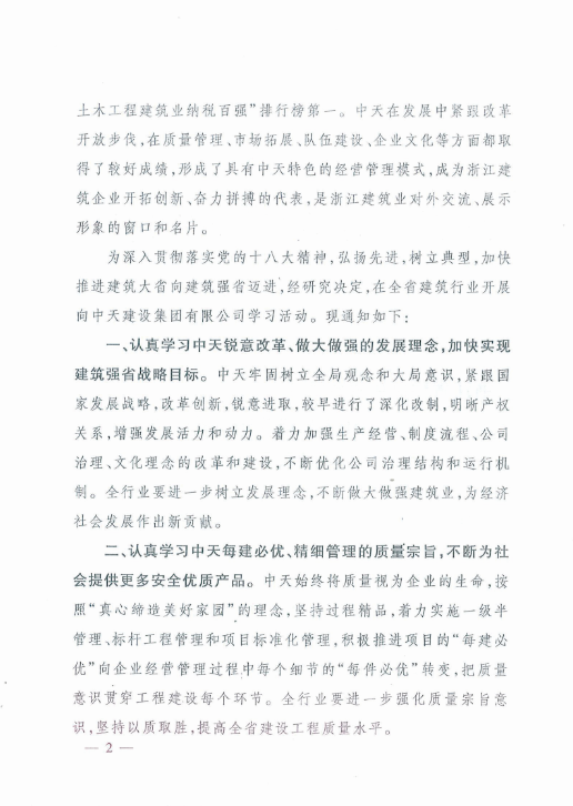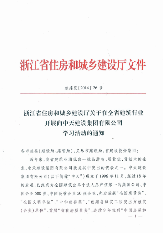 《浙江省住房和城乡建设厅关于在全省建筑行业开展向创世大发建设集团有限公司学习活动的通知》